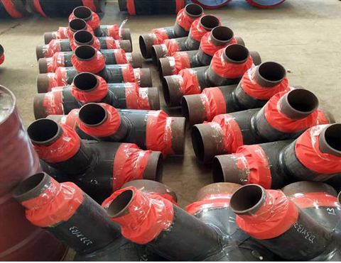 聚氨酯保溫三通是硬質聚氨脂泡沫塑料,適用溫度為-185~120℃。這種材料質地松軟,為提高其強度,在隔熱層外面加敷一層高密度聚乙烯層,形成復合材料結構,以防止地下水滲入保溫層內。利用高壓成套聚氨酯發泡設備對鋼管外表面進行拋丸除銹處理和外護管內表面電暈處理工藝,提高保溫管的粘接性能。聚氨酯保溫三通保溫層材料為密度60kg/m3至80kg/m3的硬質聚氨酯泡沫,充分添滿鋼管與套管之間的間隙,并具有一定的粘接強度,使鋼管、外套管及保溫層三者之間形成一個牢固的整體。聚氨酯泡沫具有良好的機械性能和絕熱性能,通常情況下可耐溫120℃,通過改性或與其它隔熱材料組合可耐溫180℃。聚氨酯保溫層:用高壓發泡機在鋼管與外護層之間形成的空腔中一次性注入硬質聚氨酯泡沫塑料原液而成,即俗稱的"管中管發泡"。第三層:高密度聚乙烯保護層:預制成一定壁厚的黑色或黃色聚乙烯塑料管材。聚乙烯無臭,無毒,手感似蠟,具有優良的耐低溫性能,最低使用溫度可達-70~-100℃,化學穩定性好,能耐大多數酸堿的侵蝕(不耐具有氧化性質的酸),常溫下不溶于一般溶劑,吸水性小,但由于其為線性分子可緩慢溶于某些有機溶劑,且不發生溶脹,電絕緣性能優良。